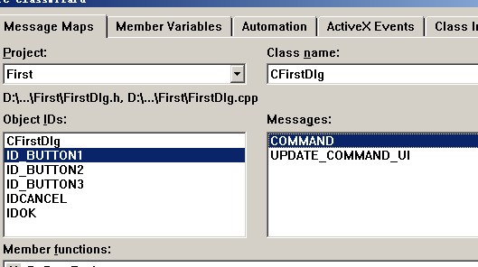 这样我们只要添加ON_COMMAND消息映射就可以处理一个按钮单击消息了,如上面第一个按钮的ID号是:1100;那么手工添加这个按钮单击消息映射的语句就是: