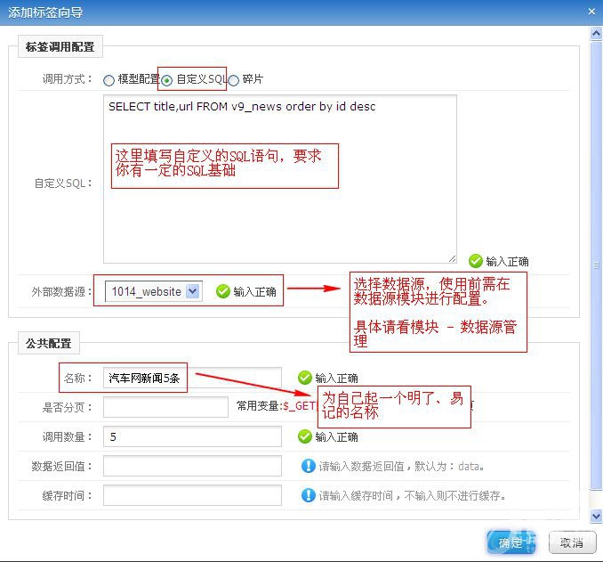 2、以SQL方式,从数据源1014_website,调取最新的5条新闻,并按倒序排列